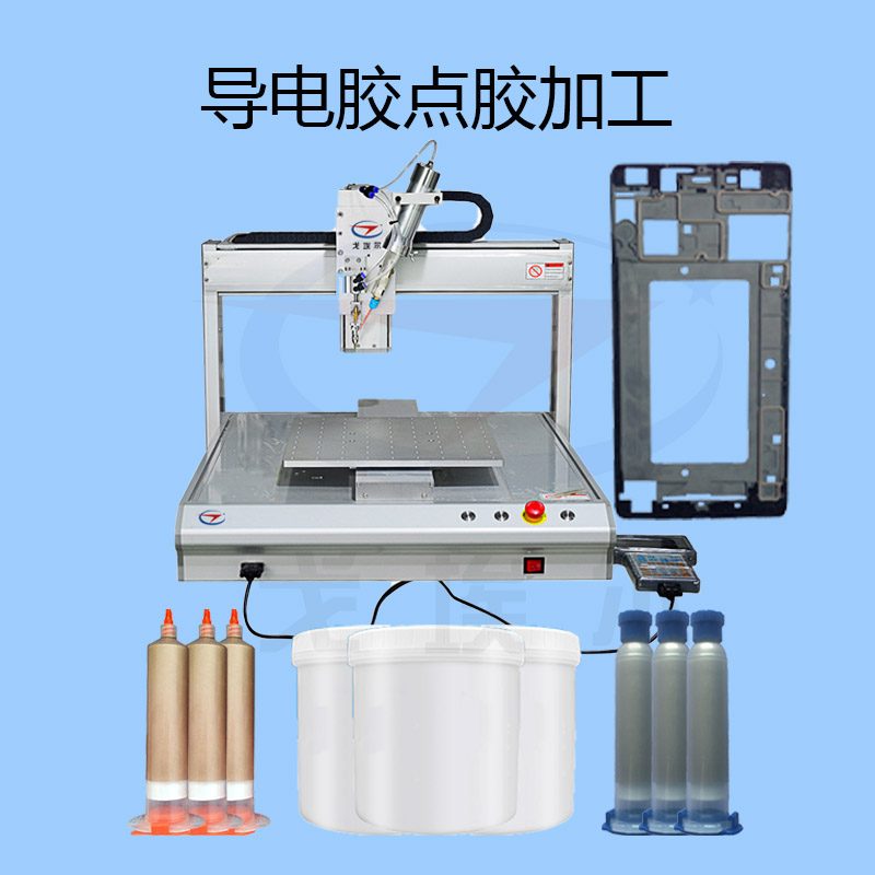 導(dǎo)電膠點膠加工是經(jīng)過自動點膠機(jī)直接將導(dǎo)電膠水經(jīng)過氣壓涂在需要做電磁屏蔽的產(chǎn)品上面。